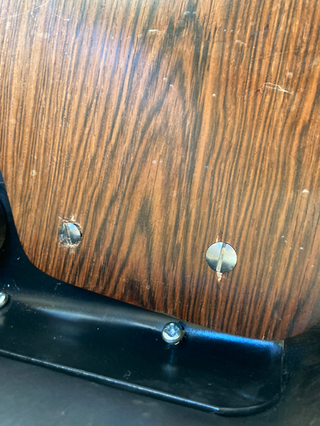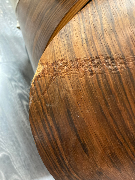 – et enfin les coques en palissandre de Rio ont été restaurées, avec greffes précises, ponçage manuel et vernis au tampon, réparation des vilaines anciennes restaurations et changement des stockmout. Le travail a été réalisé par Benoit Grellet Agencement. https://bg-agencement.fr/